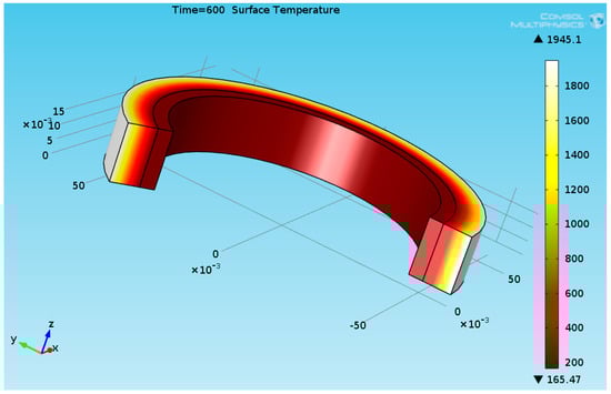 In this study, a thermal transient model was applied in COMSOL Multiphysics software. Figure 11 shows the 3D temperature field inside the TBC and the stainless steel pipe obtained at t = 600 s (10 min).