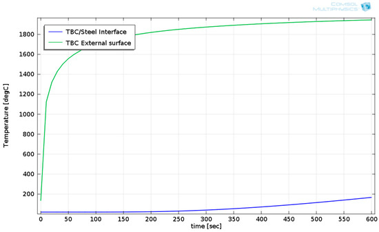 Calculated temperatures of the TBC’s external surface and at the TBC/steel interface.