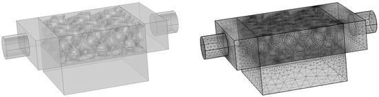 2, respectively. Surface area is an important parameter to use when managing the performance of the TPMS structure; as the porosity increases, the void increases accordingly, and the structure’s surface area decreases. From the numerical side, solving the Darcy–Brinkman model is unnecessary. Instead, the structure is included in the modeling as a solid structure. Thus, only the Navier–Stokes equation is used in this analysis.