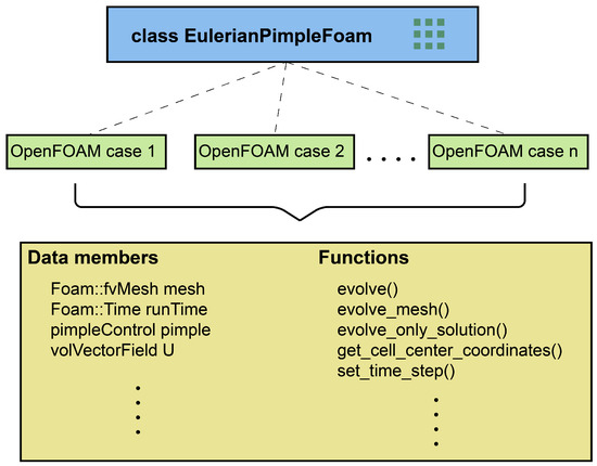 Another noteworthy advantage of this solver’s specific structure is its ability to handle multiple OpenFOAM cases simultaneously. Each OpenFOAM case can be instantiated as an object of the class and executed independently. This capability enables the simulation of multi-body scenarios, with Lagrangian particles facilitating interconnections between various Eulerian regions.