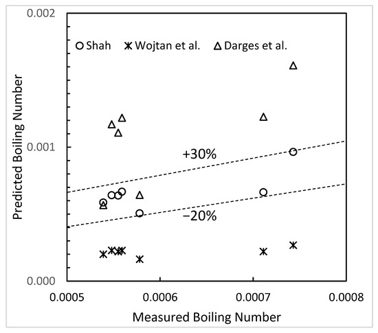 The Shah correlation also has large deviations with the data of Remizov et al., (1985) [10] for G = 700 kg/m2s. These data are also overpredicted by the Katto–Ohno and Zhang et al., correlations.