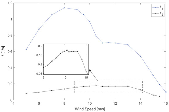 This was also consistent with the behavior reported by the authors in the work of Jalal et al. [18] for the case of the DU-5MW-RWT turbine along the entire range of operational wind speeds in that turbine’s stable oscillatory regime. This is summarized in Figure 13, shown here to illustrate the concept.