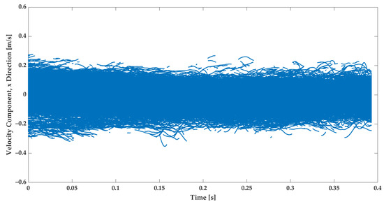 The subject of this study is to employ the dataset from the experiment in the training of the GRU model and to analyze its training and predictive performance. The data extracted from the experiments contain the velocities of tracer particles in the Lagrangian framework [17]. Figure 3 and Figure 4 illustrate the measured velocity component in the X and Y directions, respectively.