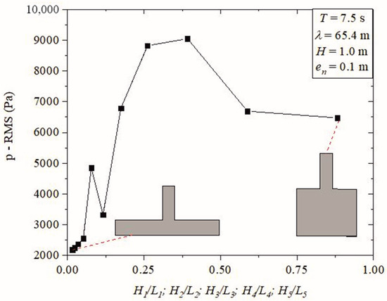 The specific objective of this investigation is to assess the influence of geometric variation on the maximization of hydropneumatic power in multi-chamber OWC devices. Since the performance indicator depends directly on the pressure and mass flow rate, the study of changes in these two quantities is also observed throughout the obtained results. The RMS (root mean square) methodology was used to obtain average values.