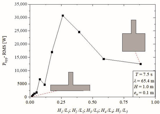 The study of OWC devices’ inlets proves to be important, along with the study of their geometry, forming a set of theoretical references for the formulation of future works. Letzow et al. [16] numerically investigated the influence of geometry on a full-scale OWC device with a seabed ramp. The study involved three degrees of freedom, and the globally optimized geometry resulted in twice the maximized available power, 37.3% greater than in the best case without the seabed ramp below the chamber and 7 times better than in the worst case.