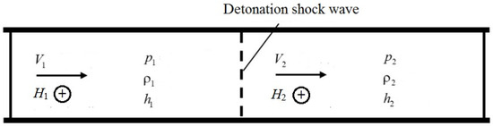 The schematic of the process of detonation in the magnetic field of an ideal gas, which passes through a plane detonation wave, considered in the present study is outlined in Figure 1.