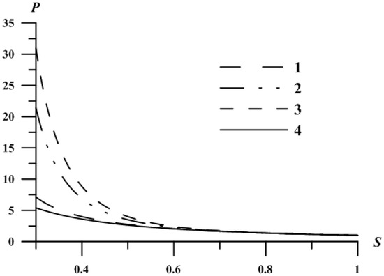 The results of the calculations, according to Equation (16), are shown in Figure 2 and Figure 3. The classical Poisson isentrope is also plotted in these Figures (curve 4),