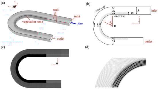 - Wang, M.; Avital, E.; Korakianitis, T.; Williams, J.; Ai, K. A numerical study on the influence of curvature ratio and vegetation density on a partially vegetated U-bend channel flow. Adv. Water Resour. 2021, 148, 103843. [Google Scholar] [CrossRef]