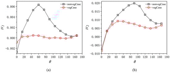 - Vegetation near the inner walls of curved channels significantly weakens secondary circulation, reducing its intensity within vegetated areas and adjacent non-vegetated zones. The vertical vortices closely correlate with particle distribution near the channel bed. Particle distribution largely aligns with the vortices’ margin in both cases. However, due to dynamic patch-scale eddies, the particles exhibit a wavy pattern near the vegetation patch, deviating from the vortex edges.