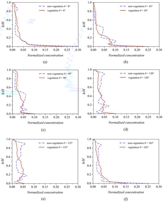 - Vertical concentration profiles reveal that secondary flow enhances upward sediment transport in non-vegetated channels. In contrast, vegetation increases Turbulence Kinetic Energy (TKE) but restricts channel space, thereby inhibiting secondary flow and vertical particle suspension. Sediment concentration is higher in lower layers of vegetated bends, a reversal of the pattern in non-vegetated bends. This underscores the complex dynamics between vegetation, secondary flow, and sediment transport, highlighting the reduced effectiveness of secondary flow in vertical particle transportation in bending channels due to vegetation obstruction.