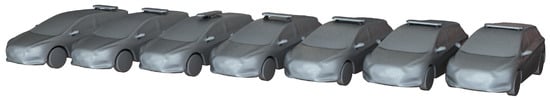 Table 1 outlines the results of a mesh sensitivity study performed on a Hyundai i40 (Hyundai, Seoul, Republic of Korea) estateback fitted with a lightbar. Note that vehicles outfitted with lightbars are referred to as Marked throughout this article. The baseline mesh settings which were applied to all vehicles for the RANS simulations equated to 36.2 million cells on the i40 Marked. Refined meshes R1 through to R4 outlined in Table 1 include a variety of refinements, including halving the cell size of the near vehicle volume mesh, doubling the number of inflation layers used to 32, and refining the surface mesh on the vehicle to have a maximum element size of 2.5 mm. It is clear from the results that the drag coefficient varies by approximately 1% across the various refinement methods, which verifies that the baseline mesh settings were adequately refined.