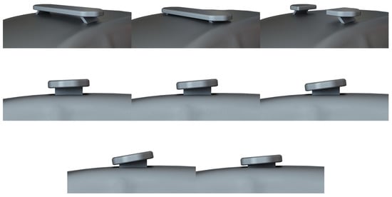 Following on from this, the Ffowcs Williams and Hawkings model [] was developed and can be used for the prediction of far-field noise. The equation behind the model is shown in Equation (10). The function defines the mathematical surface enclosing all sources outside of which () the solution is desired. represents the velocities of surface f, is the Dirac function, is the Heaviside function, and c is the far-field sound speed. The right side represents the sources, with the first being the quadrupole, the second being the dipole, and the last term being the monopole. Equations (11) and (12) outline the formulation for F and Q in the dipole and monopole terms, respectively.