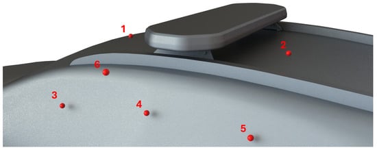 Noise receiver locations in the vicinity of the lightbar on the Hyundai Kona Marked.