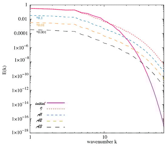 - Herring, J.R.; Orszag, S.A.; Kraichnan, R.H.; Fox, D.G. Decay of two-dimensional homogeneous turbulence. J. Fluid Mech. 1974, 66, 417–444. [Google Scholar] [CrossRef]