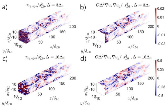 Clark et al. [] and Vreman et al. [] derived gradient-based models, which allow for the expression of the subgrid stresses using the following similarity law: