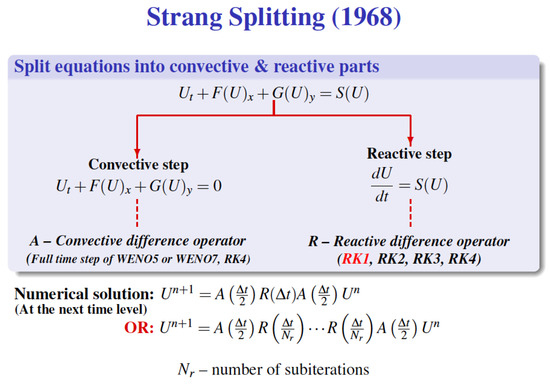 - Colella, P.; Majda, A.; Roytburd, V. Theoretical and Numerical Structure for Numerical Reacting Waves. SIAM J. Sci. Stat. Comput. 1986, 7, 1059–1080. [Google Scholar] [CrossRef]