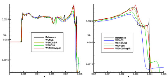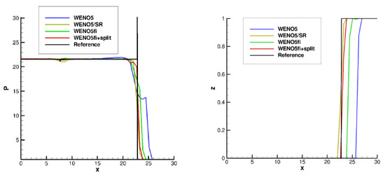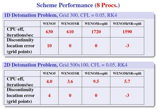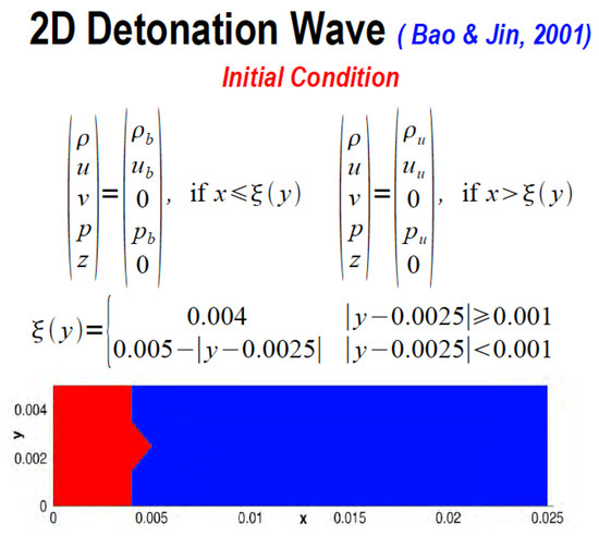 - Wang, W.; Shu, C.W.; Yee, H.C.; Kotov, D.V.; Sjögreen, B. High order finite difference methods with subcell resolution for stiff multispecies detonation capturing. Comm. Comput. Phys. 2015, 17, 317–336. [Google Scholar] [CrossRef]