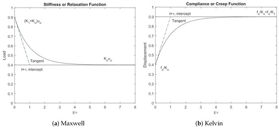 Figure 2. A sudden displacement is applied to the Maxwell model, whereas a sudden load is introduced to the Kelvin model [