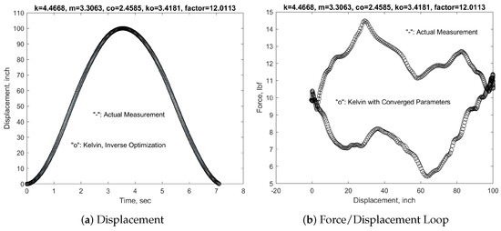 34] as the analytical solution of the equivalent viscoelastic vibration system modeled with the Kelvin model. With the same inverse optimization procedures, we obtain the system parameters with