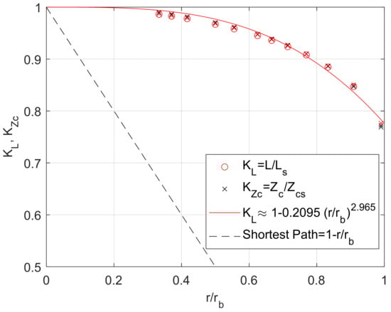 where is the geometrical characteristic impedance (Equation (4)) and is the impedance measured from the CFD results. The above was then repeated for a range of curve radii.