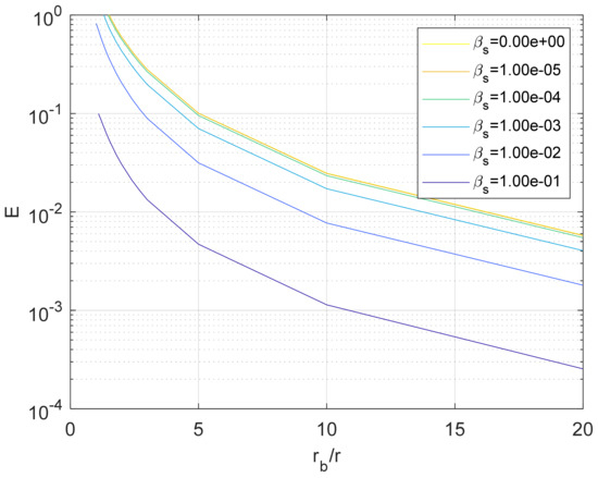 One additional piece of useful information is how much of an overall effect a curved tube has, and under what conditions a straight tube approximation can be used without correction factors. In this case, one can calculate the error between the CFD-calculated responses for curved and straight tubes with the same cross-section and centerline length. The resultant normalized root mean squared (RMS) error is shown in Figure 19. As one can see from this plot, it is possible to make the straight tube simplifying assumption for more extreme bends if the dissipation number is large. For example, for zero viscosity, the relative error reaches 1% at = 16.2, while for the same error can be achieved with the more extreme bend ratio of = 3.5. Another feature that can noted from this graph is that the dissipation number makes little difference for less than , which is similar to the effect in straight tubes for most applications of interest.