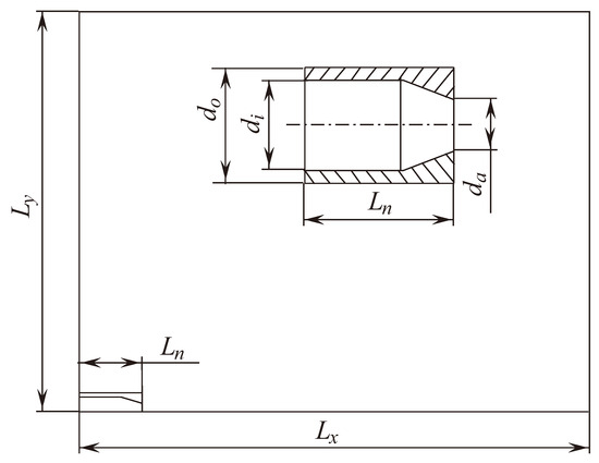 The nozzle diameter, , and the nozzle half-opening angle, , are the geometric parameters impacting on jet structure and quantities exhausted from a conical nozzle. In the general case, dimensionless regime parameters that determine the flow in a jet are the Mach number of the jet, , the ratio of specific heat capacities at constant pressure and constant volume, , the ratio of stagnation temperatures of the jet and surroundings, , and the ratio of static pressures at the nozzle outlet and surroundings (degree of non-design). Three outflow regimes for a supersonic jet are seen based on degree of non-design: (i) an overexpanded jet if , (ii) a design jet if , and (iii) an underexpanded jet if . Three zones are typically identified in jet flow analysis: initial (gas-dynamic), transition, and main. Off-design (n ≠ 1) supersonic jets in the initial zone are best suited for the implementation of self-oscillatory processes due to unevenness of parameters over the jet cross section [19].