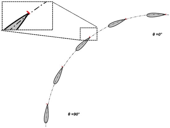 Because the highest amount of energy is extracted in the first quarter of the turbine cycle (0° < θ < 90°), the phase angle φn should be selected so that the OGF is fully located at the blade’s upper-surface positive-pressure side in the first quarter of the turbine cycle for each blade. In this case, φ1 = 0°, which means the swing motion of the OGF starts with blade 1 motion.