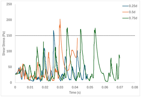 In the context of stent flow, if we consider the stent strut as a cylinder, the blood flow through the strut can be likened to flow over a partial cylinder. This flow is quantified by the Reynolds number (). When surpasses 50, the flow wake downstream of the strut becomes unstable and exhibits oscillations. For values exceeding 100, vortices are shed from the back of the cylinder [19]. Flow separation on the cylinder surface typically commences at values ranging between 5 and 7 [83]. Under conditions of physical exertion, the flow around the struts is characterized by the presence of vortices, whereas under normal physiological conditions the flow around the struts tends to be laminar.