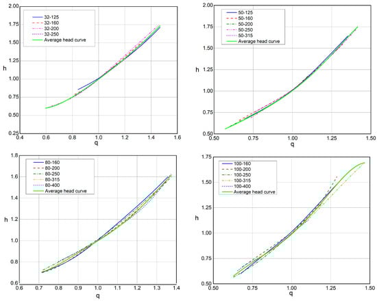 Dimensionless head curves (Etanorm 32, 50, 80, 100, 125, 150, 200, 250, 300).