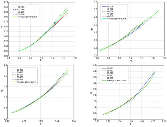 All the data obtained for norm pumps starting with 32 to 300 mm are divided into two groups: smaller pumps from 32 to 65 and larger ones from 80 to 300.