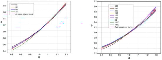 Barbarelli et al. [] suggested dependence of nsp and nst and defined head ratio and flow rate ratio coefficients as a polynomial dependence of the specific speed of the pump, based on the sample of 26 investigated PATs: