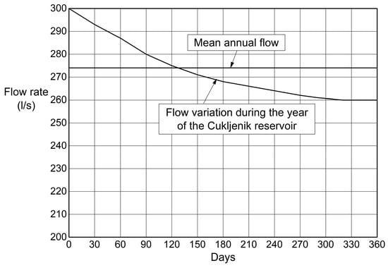 Diagram of the mean daily flow and the mean annual flow of the reservoir “Cukljenik” for the period 2003–2013.