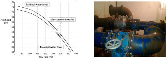 To check the data and determine the possible installed flow and net head of the PAT aggregate, measurements of pressure and flow rate were made on the supply pipeline to the “Cukljenik” reservoir. These measurements were carried out to determine with high reliability the so-called system curve. The measurement results are shown in Table 2: