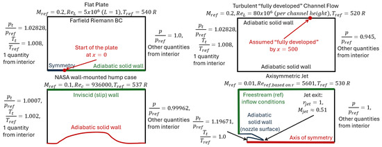 The computational domains and boundary conditions are schematically illustrated in Figure 2. The employed meshes were downloaded from the NASA website to minimize numerical errors and ensure numerical results consistent with those already available.