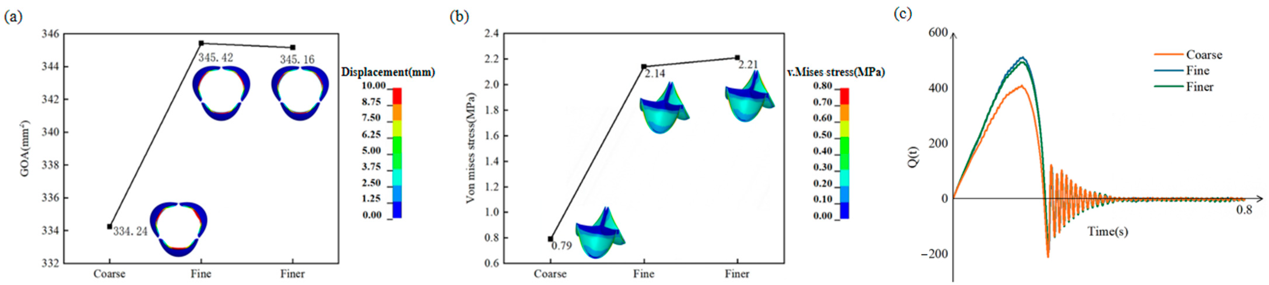 - Tao, L.; Zhou, J.; Zhou, H.; Li, Y.; Yan, X.; Yu, C. Research on fatigue optimization simulation of polymeric heart valve based on the iterative sub-regional thickened method. Int. J. Numer. Methods Biomed. Eng. 2023, 39, e3717. [Google Scholar] [CrossRef] [PubMed]