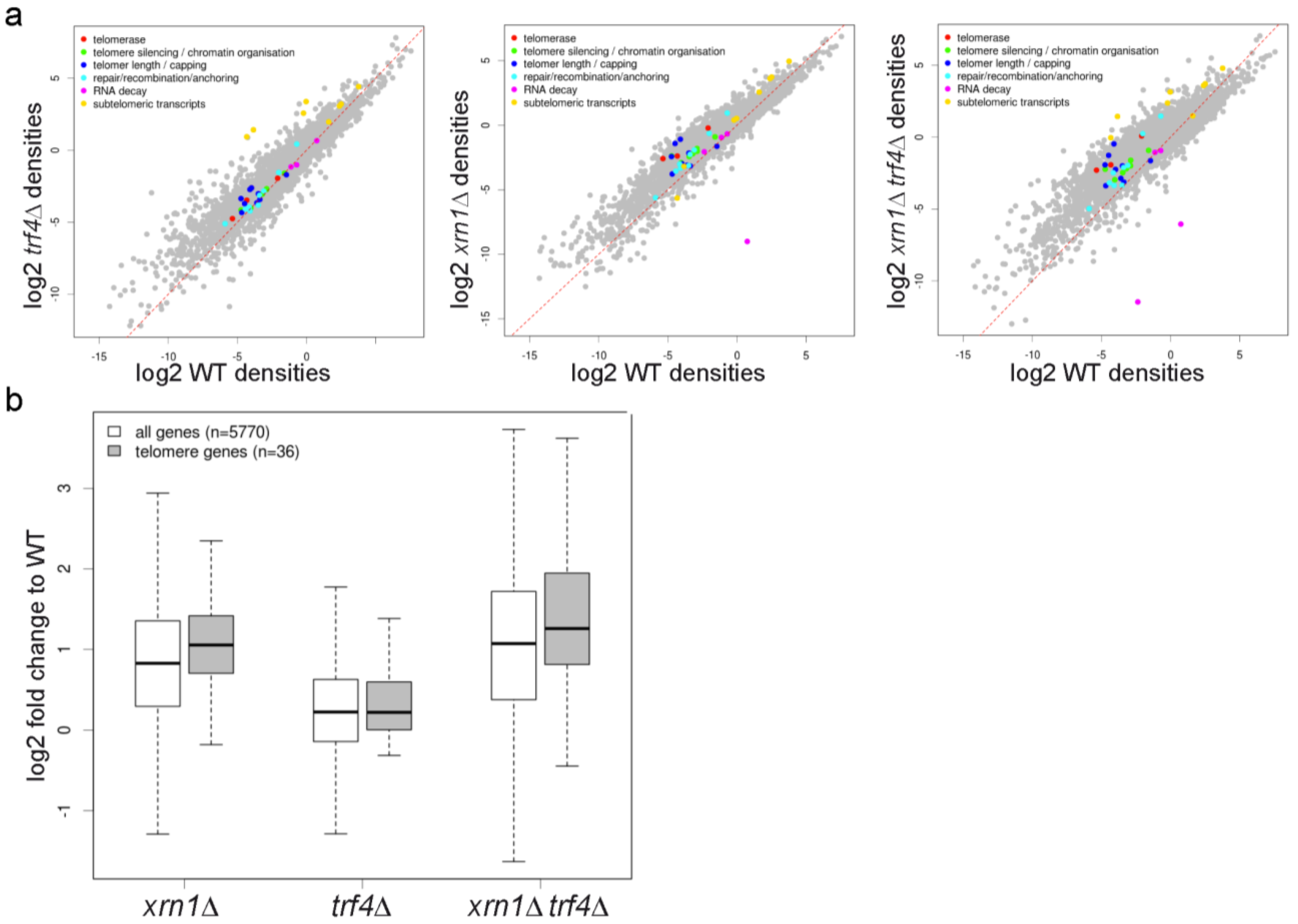 2.9. xrn1∆ and trf4∆ Mutations Change Global Expression Profiles but do not Affect Specifically Telomere Homeostasis Genes