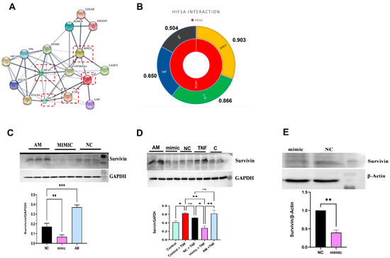 2.7. miR-4693-5p Reduced the Expression of Survivin, a Downstream Target of HIF1α