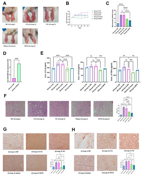 2.11.1. miR-4693-5p Reduces Macroscopic Arthritic Score and Pro-Inflammatory Cytokines