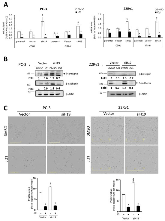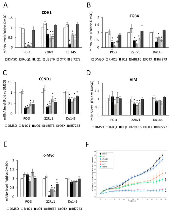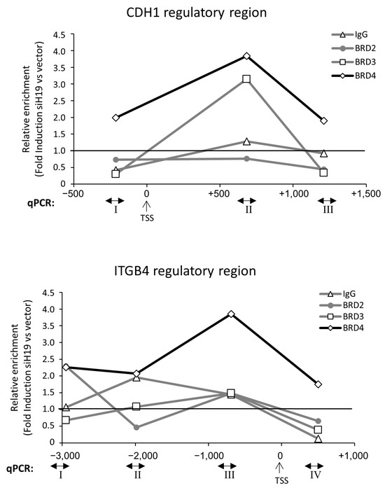 2.2. E-Cadherin and β4 Integrin Are Direct Target Genes of the BET Family Members