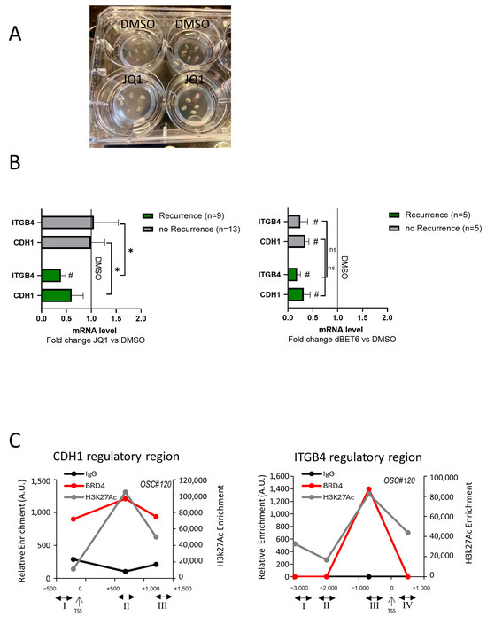 2.3. BRD3 and BRD4 Bind CDH1 and ITGB4 Regulatory Regions in Organotypic Slice Cultures (OSCs)