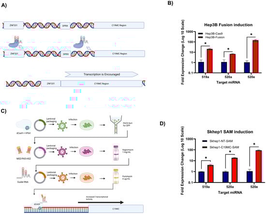 Background/Objectives: Hepatocellular carcinoma (HCC) is one of the world’s deadliest cancers; however, the mechanisms that contribute to its aggressiveness are poorly understood. In the recent literature, overexpression of the Chromosome 19 MicroRNA Cluster (C19MC) has been associated with an aggressive phenotype and unfavorable prognosis in HCC. However, the molecular consequences of C19MC overexpression in HCC remain poorly understood. Methods: Here, we created a constitutive C19MC-overexpressing HCC model and used two different CRISPR-engineered C19MC-overexpressing HCC models to analyze phenotype and transcriptomic changes. Results: We observed that C19MC overexpression induces cancer stem cell (CSC) phenotypic features in vitro and analyzed transcriptomic changes in genes correlating with stemness, such as NFκB and EMT. Conclusions: C19MC induces changes in HCC that are consistent with stemness and aggression, which provides a better understanding of why C19MC could be a biomarker of poor prognosis. Full article