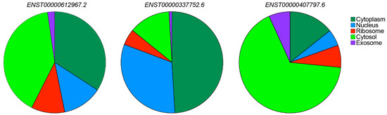 Figure 5. LncLocator prediction of subcellular localization of the three human variants of CARINH. Colors indicate different cell compartments.