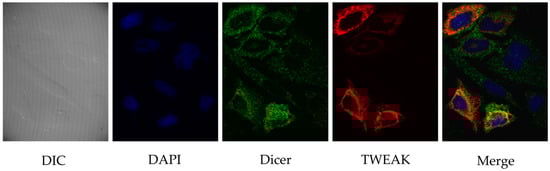2.2. TWEAK and Dicer Proteins Colocalize at the Perinuclear Region of HeLa Cells