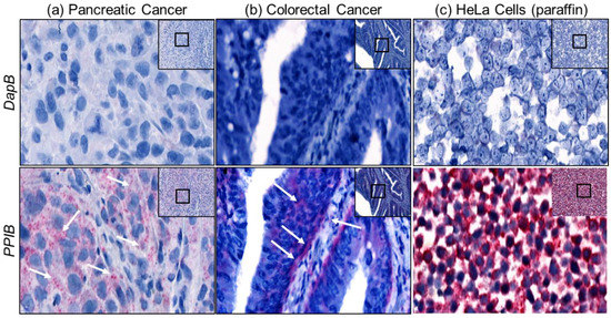 - Wang, F.; Flanagan, J.; Su, N.; Wang, L.C.; Bui, S.; Nielson, A.; Wu, X.; Vo, H.T.; Ma, X.J.; Luo, Y. RNAscope: A novel in situ RNA analysis platform for formalin-fixed, paraffin-embedded tissues. J. Mol. Diagn. 2012, 14, 22–29. [Google Scholar] [CrossRef] [PubMed]
