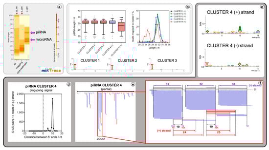 - Rosenkranz, D.; Zischler, H. proTRAC—A software for probabilistic piRNA cluster detection, visualization and analysis. BMC Bioinform. 2012, 13, 5. [Google Scholar] [CrossRef] [PubMed]