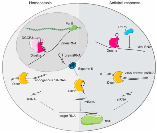 Interestingly, both Drosha and Dicer have been recently shown to have a direct role in controlling viral infections, apart from their classical function in small RNA biogenesis (Figure 2).