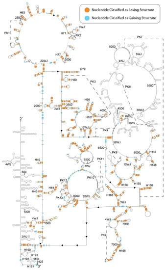 - Rouskin, S.; Zubradt, M.; Washietl, S.; Kellis, M.; Weissman, J.S. Genome-wide probing of RNA structure reveals active unfolding of mRNA structures in vivo. Nat. Cell Biol. 2014, 505, 701–705. [Google Scholar] [CrossRef]