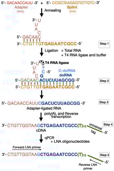 - Munafó, D.B.; Robb, G.B. Optimization of enzymatic reaction conditions for generating representative pools of cDNA from small RNA. RNA 2010, 16, 2537–2552. [Google Scholar] [CrossRef]