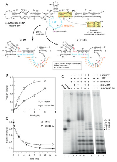 12. Beckmann, B.M.; Hoch, P.G.; Marz, M.; Willkomm, D.K.; Salas, M.; Hartmann, R.K. A pRNA-induced structural rearrangement triggers 6S-1 RNA release from RNA polymerase in Bacillus subtilis. EMBO J. 2012, 31, 1727–1738. [Google Scholar] [CrossRef] [PubMed]