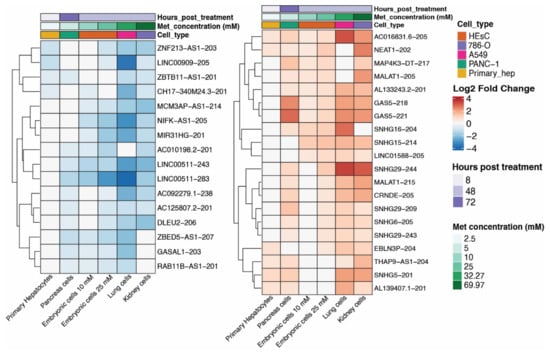 To date, no previous study has performed a global identification of lncRNAs affected by metformin treatment nor explored its ability to regulate gene expression at the transcript level. In this study, we aimed to globally characterize the lncRNA isoforms that were differentially regulated by metformin on human cell types (four cancer cells, one primary cell, and two embryonic stem cells) using openly public transcriptomic data, and to provide insights into the possible roles of these molecules.